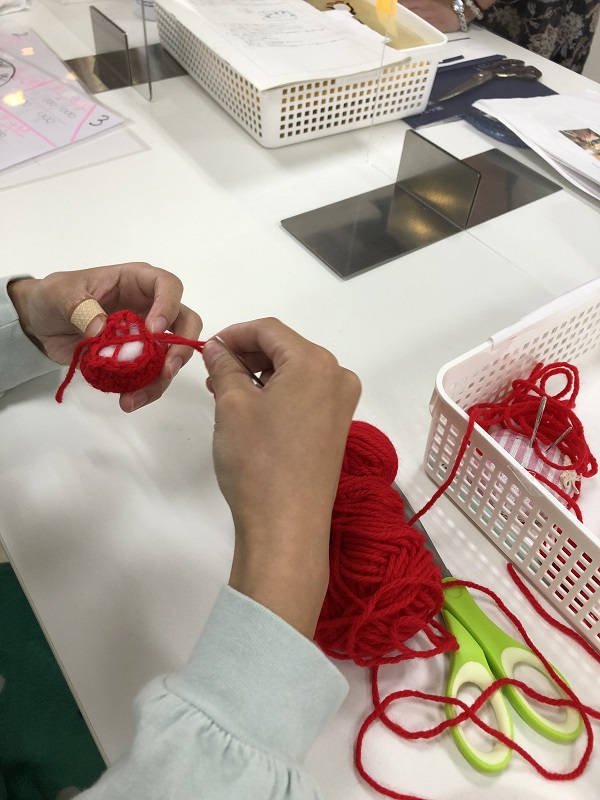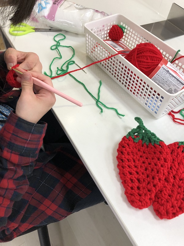 いちご農園で提供する作品を作っています。小さくて可愛らしいお土産です。