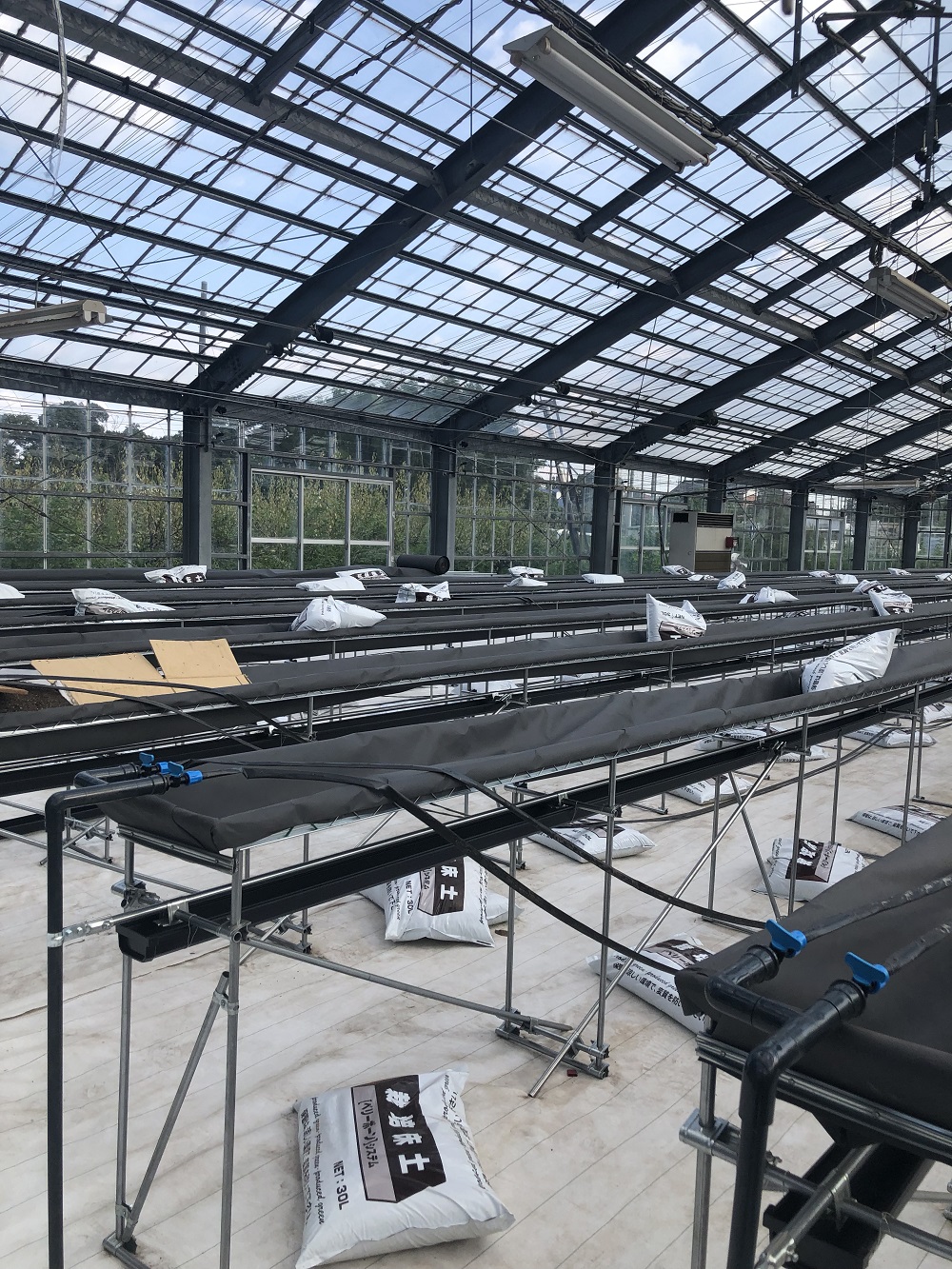 たくさんのプランターがあるのでたくさんの土袋が必要です